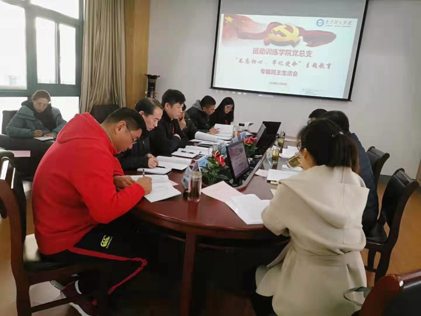 根据学校党委“不忘初心、牢记使命”主题教育领导小组部署,运动训练学院党总支在组织集中学习,开展谈心谈话,认真撰写班子和个人剖析材料的基础上,制定了主题教育专题民主生活会方案,于12月6日下午召开“不忘初心、牢记使命”专题民主生活会。省委第八巡回指导组成员罗兵前,校纪委委员、训练处处长丁习明出席会议。会议由党总支书记张亚军主持。