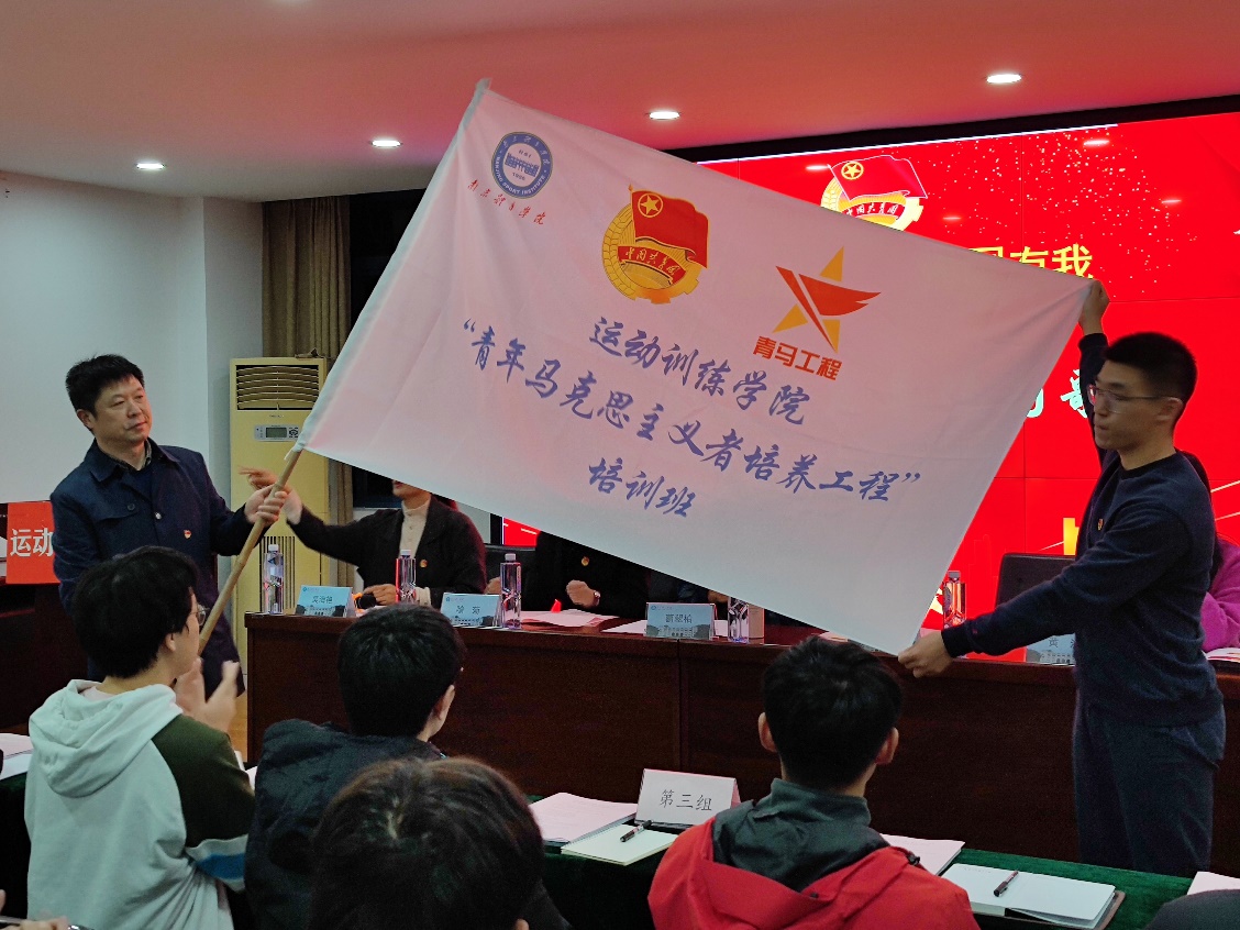 运动训练学院第六期青马班优秀学员、预备党员谢洪胜和本期学员代表王语馨先后发言。开班仪式在嘹亮的团歌声中结束。在授课环节,葛翠柏老师为全体学员讲授题为“为青春引路,与信仰同行”青马第一课。