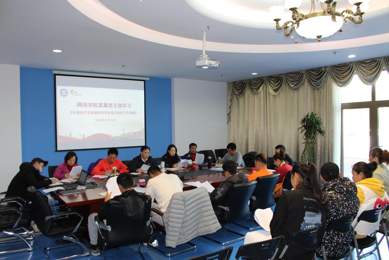 11月15日上午,网球学院直属党支部召开全体党员会议,集中学习党的十九届六中全会精神和《中国共产党普通高等学校基层组织工作条例》,全体党员和入党发展对象参加会议,校党委第二巡察组部分成员出席会议。会议由直属党支部书记丁习明主持。