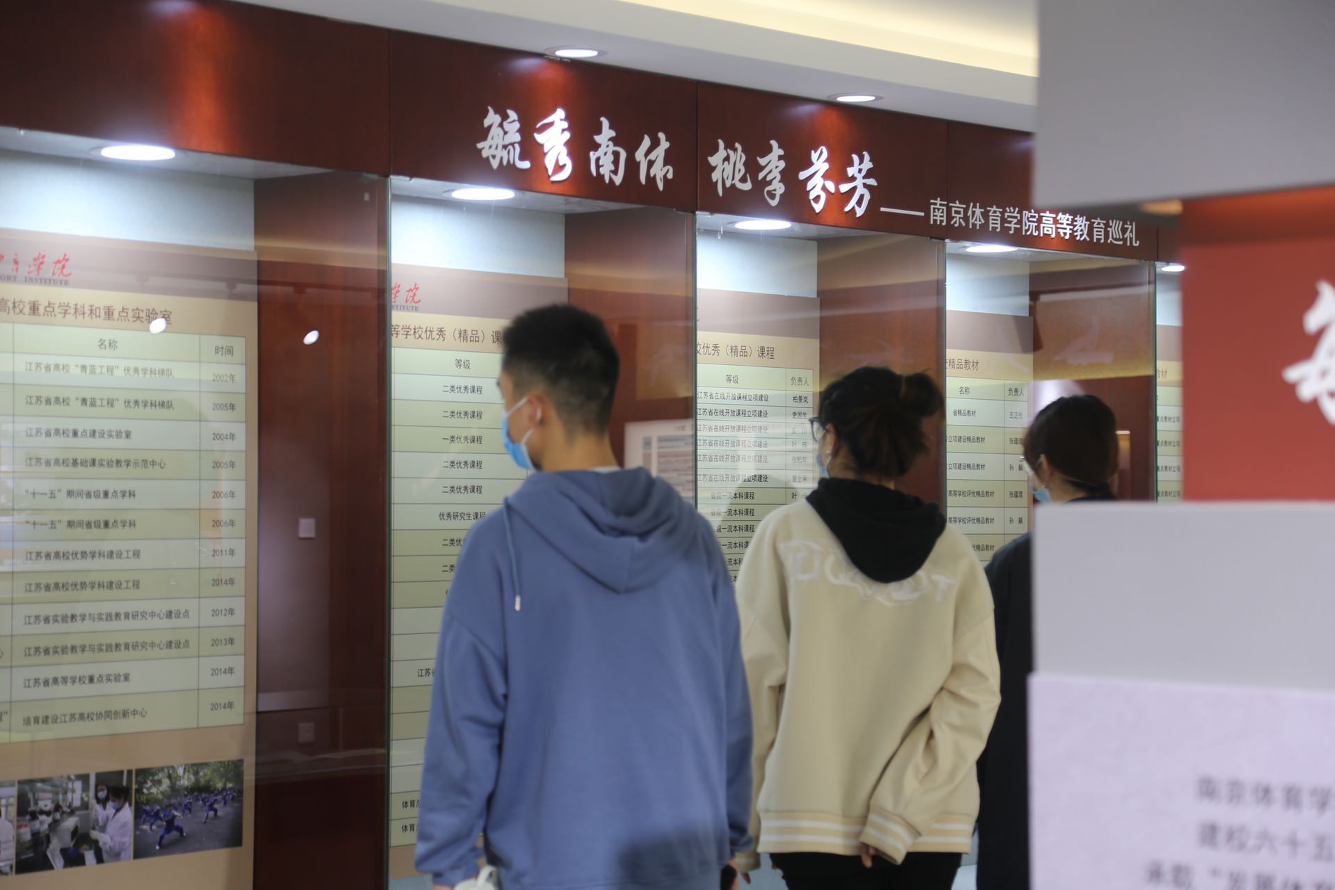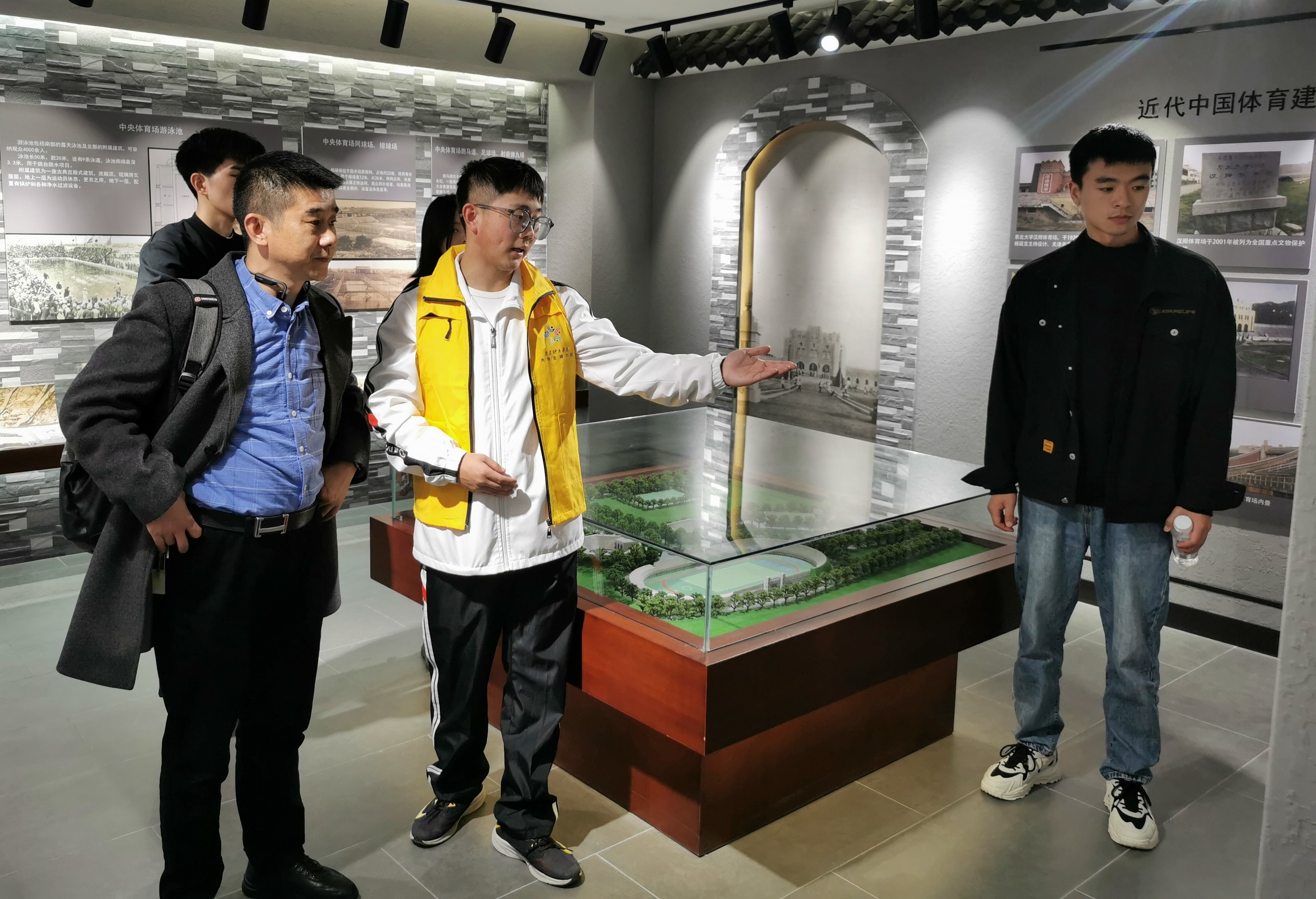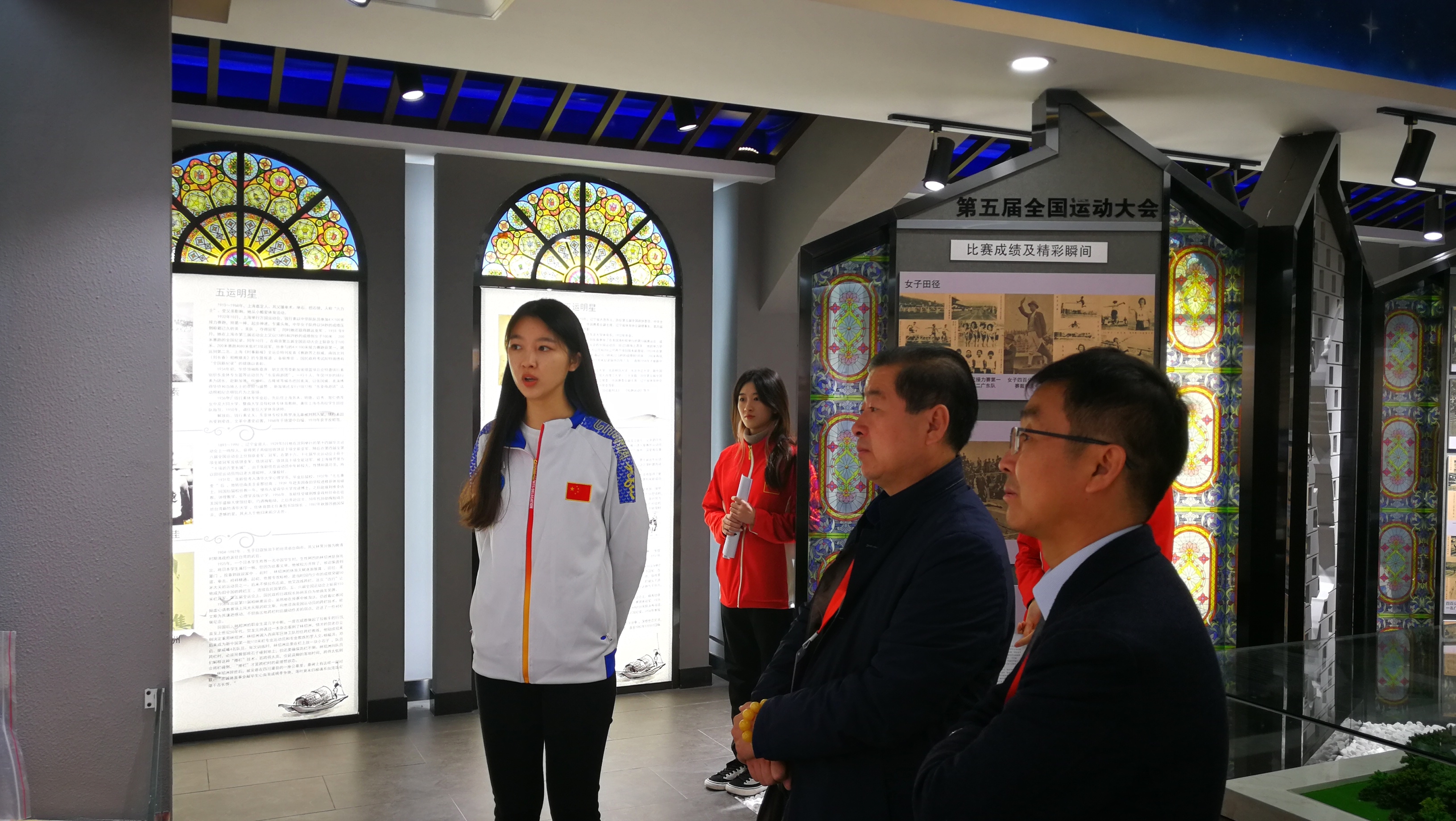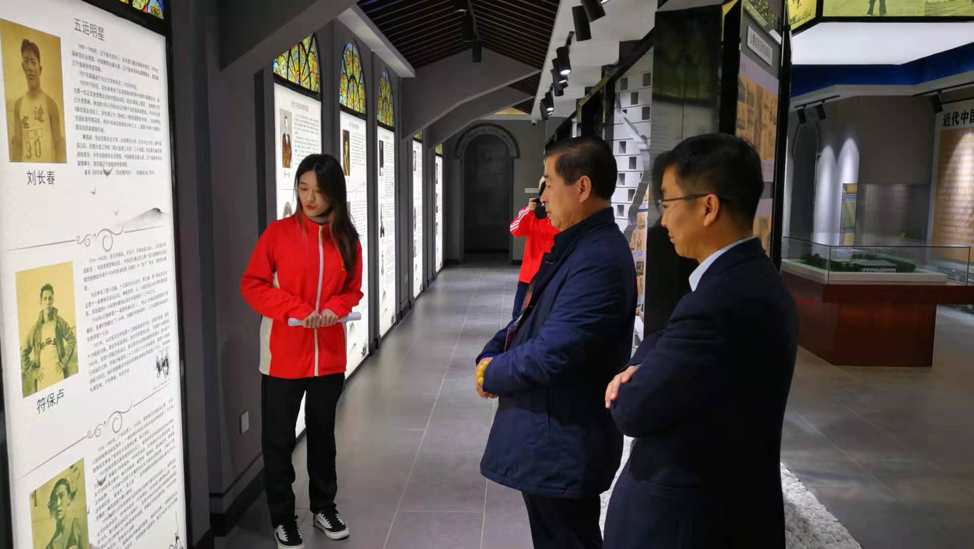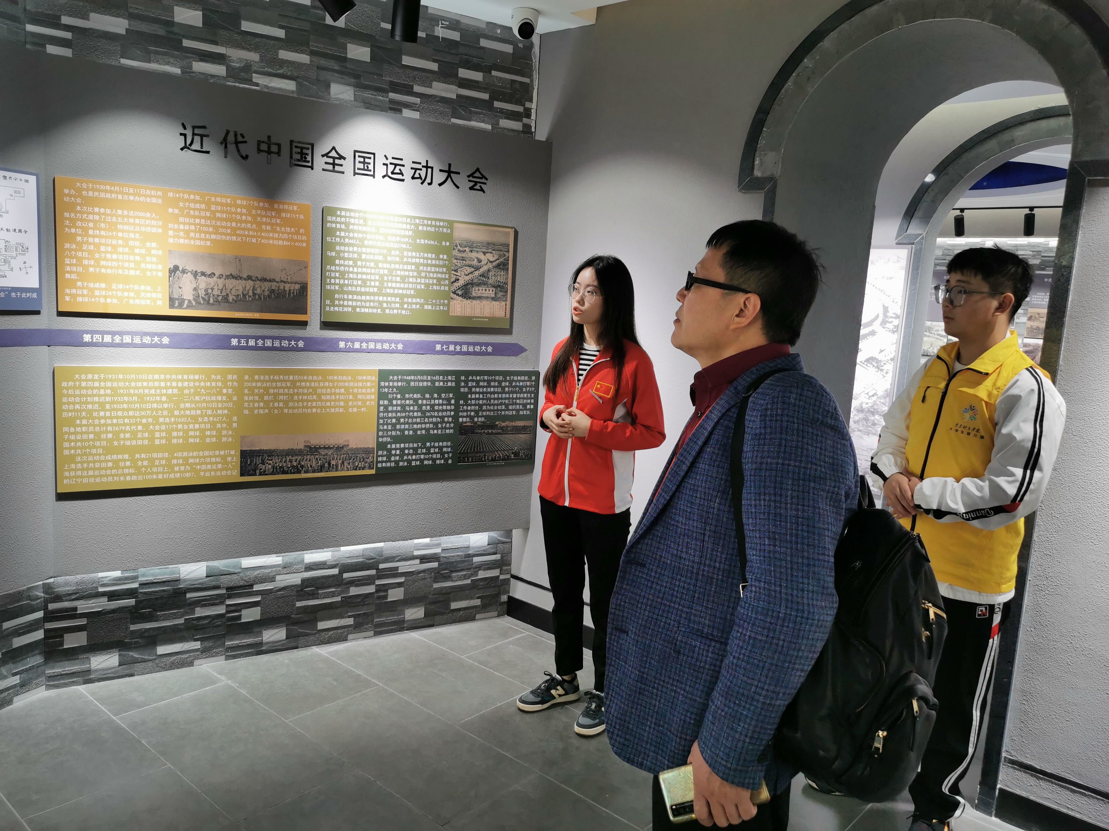 图书馆副馆长李明华老师带领学生讲解员王湛清、武梦雪、曹锟琦、诸晶鑫、赵海逸等同学,热情洋溢地迎接一批批进入校史馆和陈列馆的参观者,专业细致地为他们讲解领导人关怀、国际交流、竞技成就、教学科研重大成就、三位一体模式、中央体育场建设历史,中国近代举办或参加的七届全国运动大会、十届远东运动会、三届奥运会情形,中国近代代表性的体育政要、体育教育家、体育明星等主要版块内容。另外,两馆还陈列了部分奖章,纪念章,珍贵图书期刊照片等文史资料,增添了两馆的历史气息与文物气息,激发了参观者的探究兴趣。