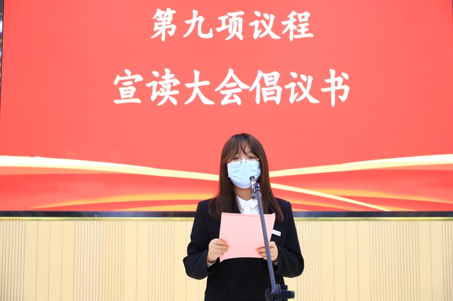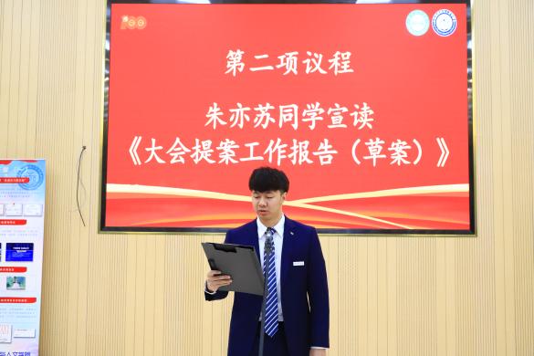 新当选的学生委员代表唐羽萱同学向与会代表宣读大会倡议书,希望各位代表和同学,铭记“未来属于青年,希望寄予青年”,不负党和人民的殷切期望!勤于学习、善于创造、甘于奉献,努力开创我院学生会工作的新局面,为学校、学院建设事业做出应有的贡献!