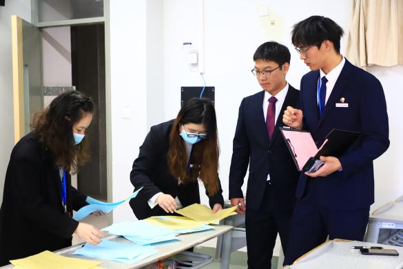 大会计票人员发放选票。学生代表现场填写选票并向投票箱投下自己庄严的一票。