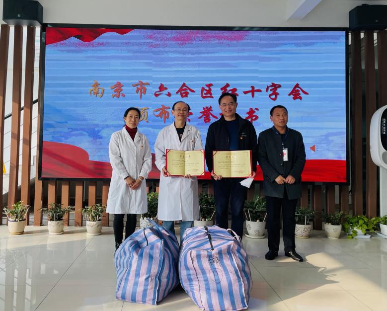 南京市六合区红十字会副会长潘启兵接受衣物捐赠,为双方颁发荣誉证书,并作见证发言,他高度赞扬了PA视讯集团入口连续三年捐冬衣献爱心的善举,肯定了双方党建共建活动的创新形式。