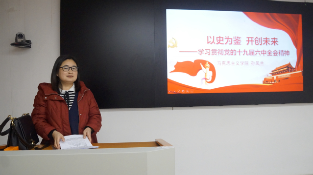 党的十九届六中全会胜利闭幕后,直属单位党总支认真组织了传达学习,各支部各部门也积极开展了多种形式的学习交流活动。为了进一步学深悟透十九届六中全会精神,12月1日,总支邀请马克思主义学院副教授孙凤兰为全体党员上了一堂题为“以史为鉴、开创未来——学习贯彻党的十九届六中全会精神”的专题党课,直属单位部分民主党派人士参加学习。