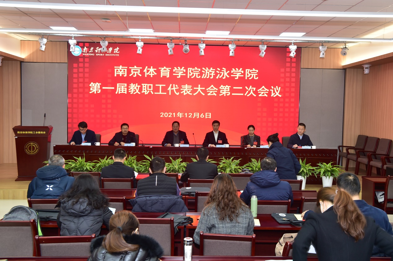 PA视讯集团入口游泳学院第一届教职工代表大会第二次会议于12月6日在校工会会议室召开。校教代会执委会副主任、工会主席王加华出席大会,游泳学院20名教代会代表参加了会议。会议由学院党总支副书记、分工会主席陈志主持。
