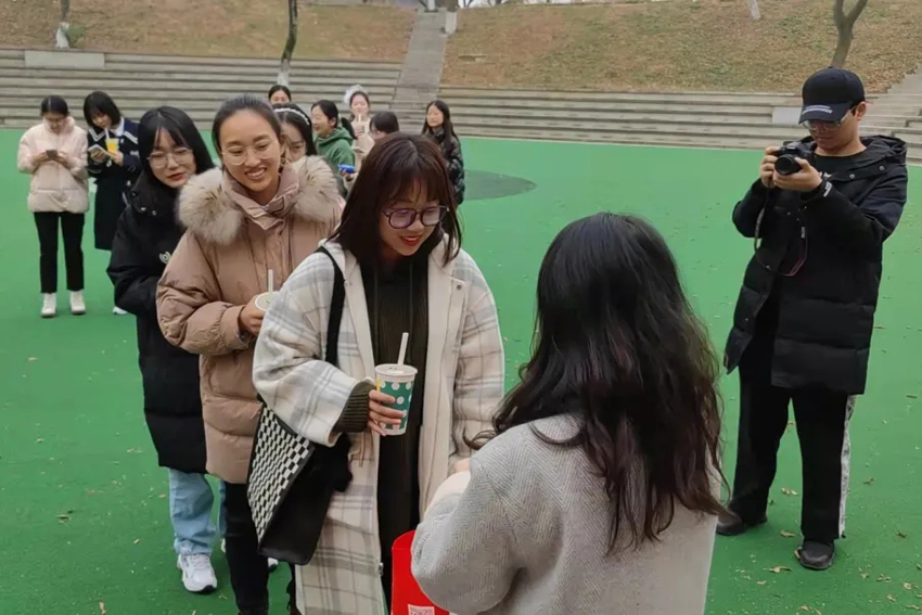 活动伊始,团长及部长们先给众人分发了温热的奶茶,随后以一个名为“要还是不要”的小游戏给大家带来了零食和意想不到的小“惩罚”。