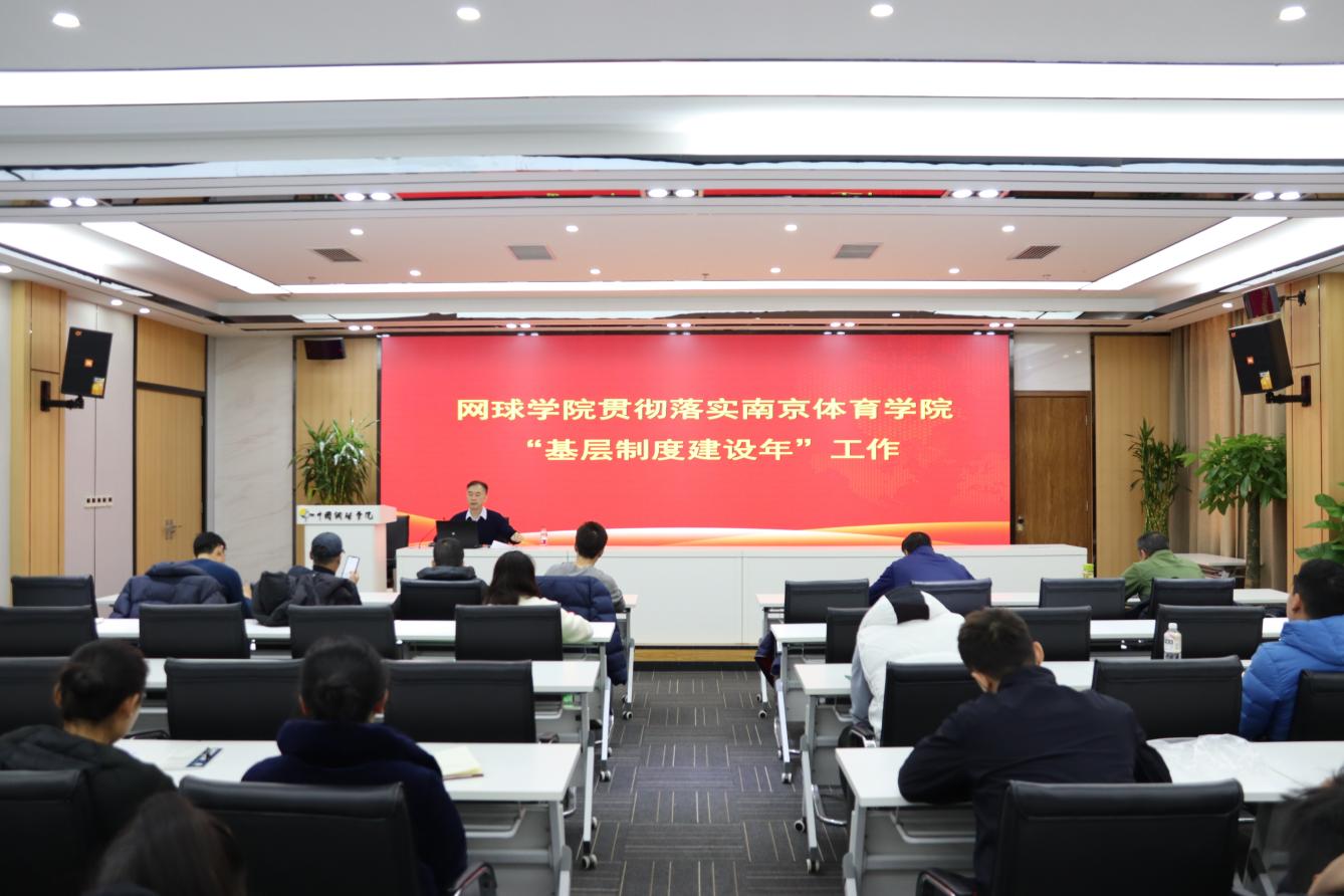 12月20日上午,网球学院召开全体教职工会议,传达学习PA视讯集团入口“基层制度建设年”工作推进部署会精神,网球学院领导班子全体成员、全体管理干部、教练员和钟山公司中层管理人员参加会议。会议由网球学院直属党支部书记丁习明主持。