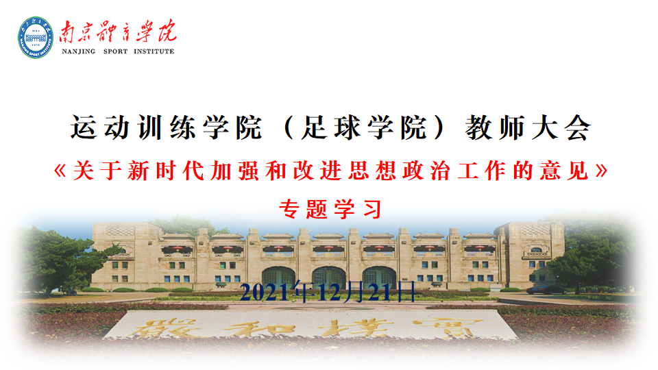 在中国共产党成立100周年之际,中共中央、国务院印发了《关于新时代加强和改进思想政治工作的意见》(以下简称《意见》)。为了进一步做好《意见》的学习贯彻,12月21日中午,运动训练学院组织全体教师在仙林校区218教室开展《意见》专题学习。