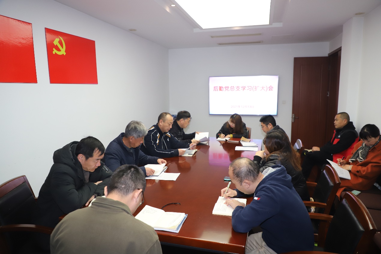 12月13日上午,后勤党总支召开学习(扩大)会议,集体学习江苏省第十四次党代会精神。后勤党总支委员、处级干部、党支部书记及各科室负责人参加会议。