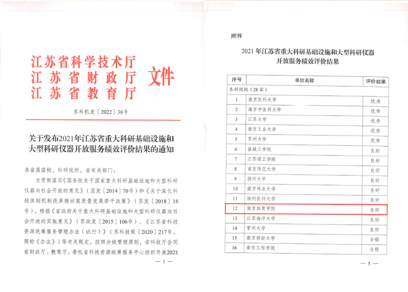 近日,江苏省科技厅、财政厅、教育厅联合发文,公布2021年省属高等学校和科研院所等单位科研设施与仪器开放服务绩效评价结果,PA视讯首次在该项工作绩效考核中获得“良好”等级。