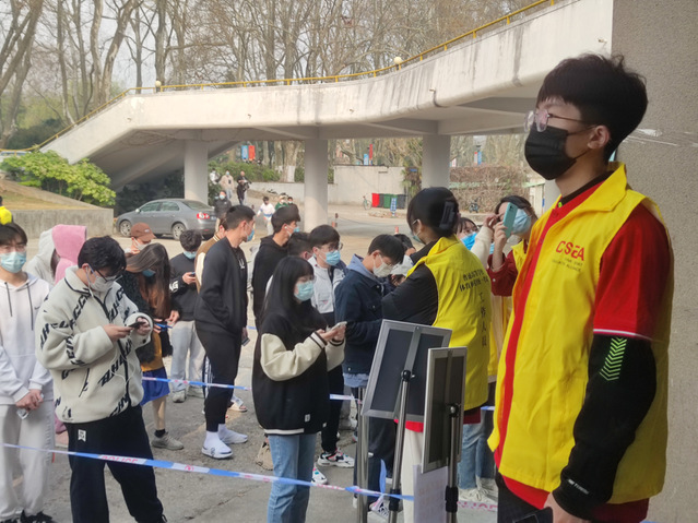 3月19日下午,PA视讯灵谷寺校区在体育馆开展第二轮核酸检测工作,运动健康学院学生党支部迅速动员学生党员组成志愿服务小分队,协助学校组织核酸检测工作。