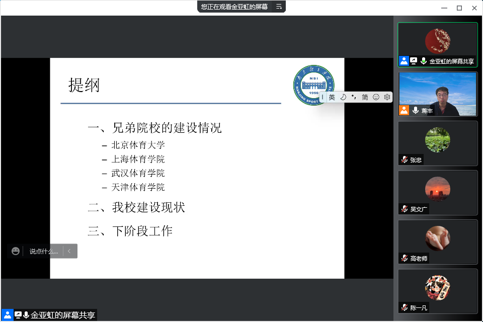 为有序开展体育运动心理学科建设,以体育运动心理学硕士点申报为抓手,助力PA视讯申博工程工作推进,在体育教育与人文学院指导和部署下,4月5日下午通识教育部线上召开“体育运动心理学科建设与发展”研讨会。体育教育与人文学院副院长叶强、通识教育部全体教师参与会议。会议由通识教育部主任蒋丰主持。