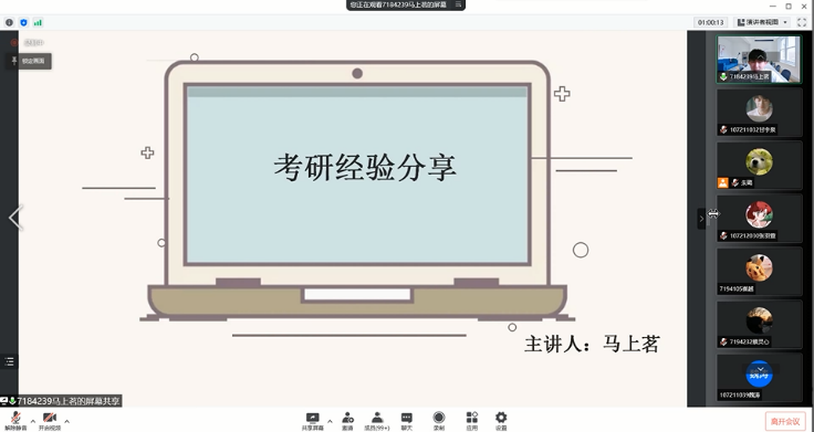 通过四位成功上岸的学长学姐的分享介绍,使大一同学提前了解到考研相关的情况,大二大三的正备考的同学对于考研产生更为深层的想法以及为备战考研有了更完备的计划,相信同学们都受益颇丰,让我们共同期待下一场考研经验分享会的到来。