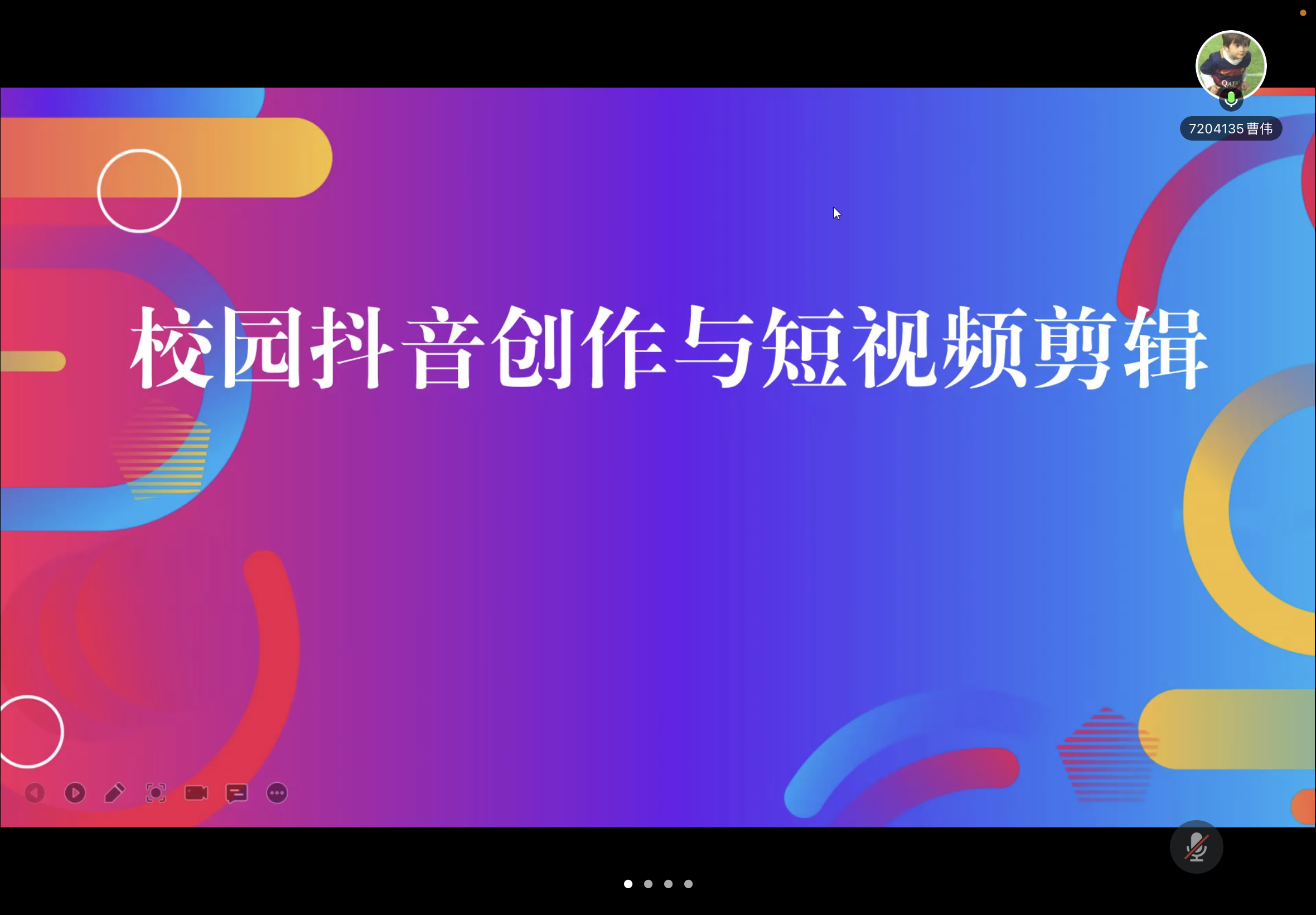 视频部部长曹伟向大家阐述了校园抖音创作和短视频的剪辑方法以及镜头的选用,详细讲述了相关注意事项。他还向大家讲解了管理后台的一些原则以及如何选择并跟随热点制作短视频。