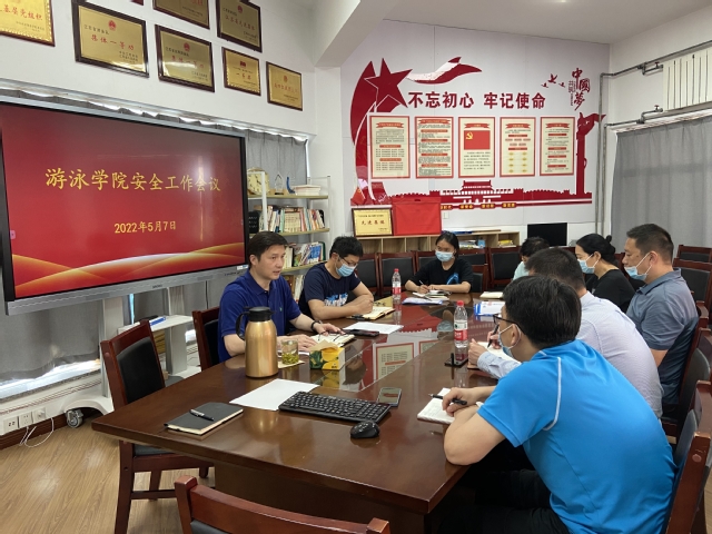 为切实加强游泳学院安全工作,着力防范化解疫情防控、训练、学习、生活各环节安全风险,筑牢安全防线,保障师生员工身心健康和生命安全,促进竞技体育专门人才培养和游泳学院高质量发展。5月7日下午,游泳学院全体管理干部在跳水花游馆二楼会议室召开安全生产专项工作会议。