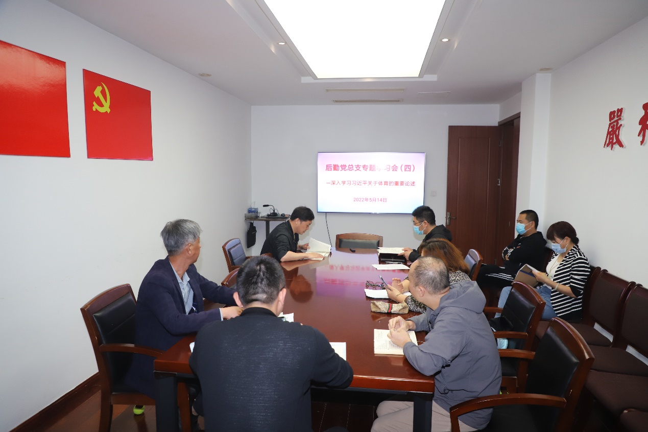 5月14日上午,后勤党总支召开《深入学习习近平关于体育的重要论述》专题学习会,后勤党总支委员、处级干部、党支部书记及各科室负责人参加会议。