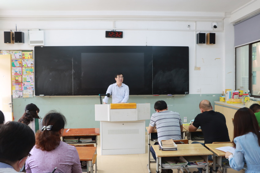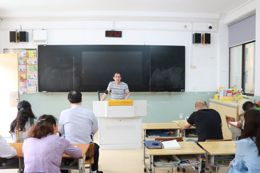 5月18日中午,附属学校在五年级教室召开全体教职工会议,开展思想政治与师德师风专题教育。党总支书记、校长吴建华主持会议,全体教职工出席会议。