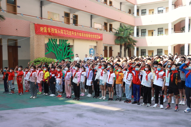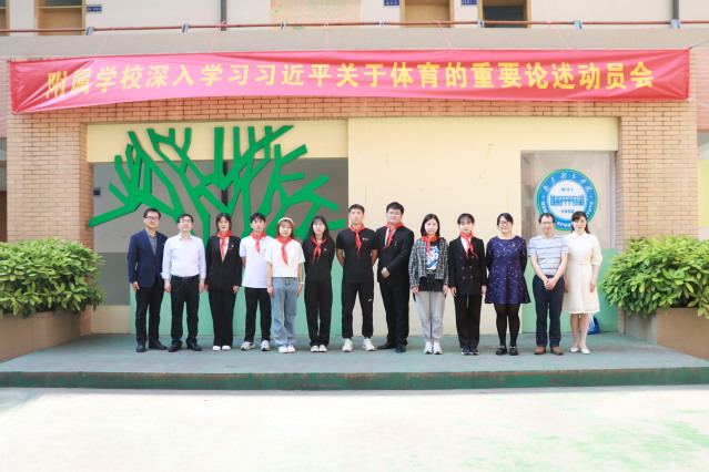 为深入开展中小学生学习习近平关于体育的重要论述的活动,发挥PA视讯集团入口体教融合协同育人优势,5月23日早晨,附属学校举行深入学习习近平关于体育的重要论述动员会。体育教育与人文学院党总支副书记、学生党支部书记卢奎,体育教育与人文学院辅导员、学生党支部组织委员乐晓云,体育教育与人文学院优秀大学生宣讲团成员,附属学校全体师生参加动员会。