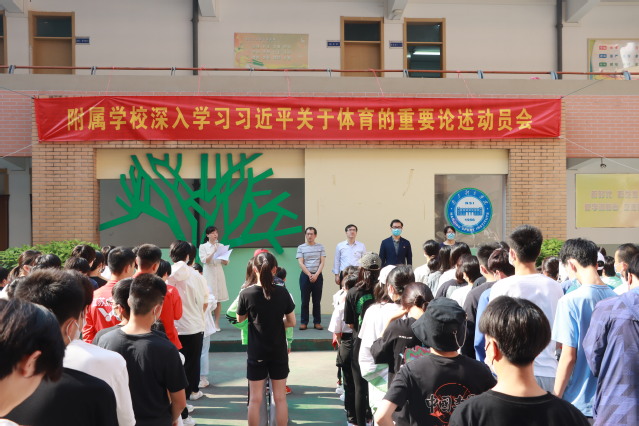 附属学校党总支书记、校长吴建华就附属学校师生学习习近平关于体育的重要论述活动进行动员。他首先感谢体育教育与人文学院对本次活动的大力支持,希望全体同学切实将大学生宣讲团的宣讲内容转化为成长的内在动力,树立“使命在肩、奋斗有我”的志向,将个人的竞技成绩目标与体育强国目标相结合,从小立志担负起建设体育强国的人生理想。