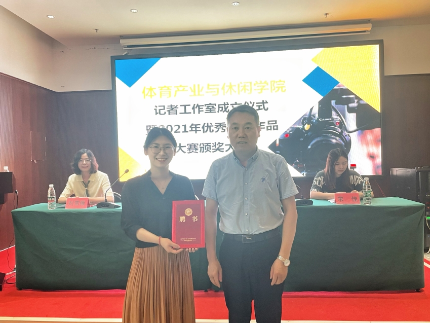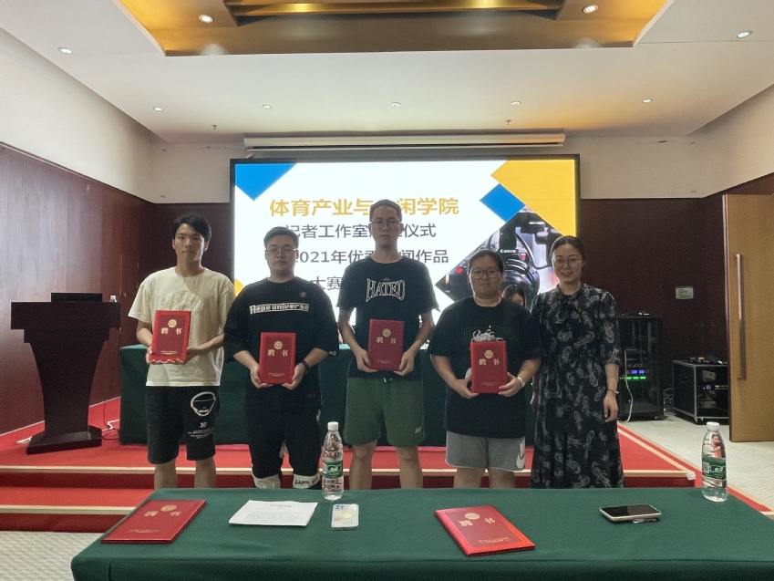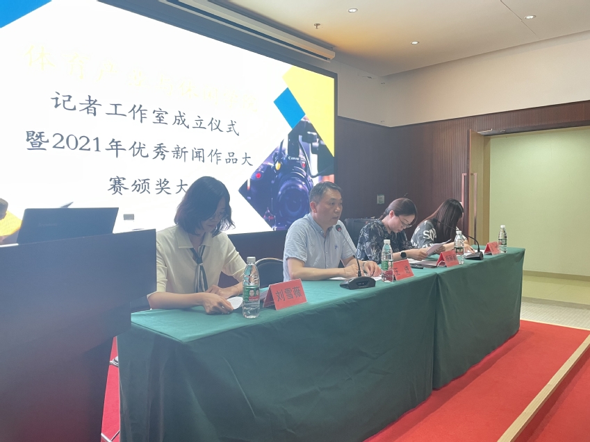 为了加强学院宣传工作,规范宣传工作队伍建设,体育产业与休闲学院于6月1日下午2点在运动员转训中心第三会议室举行了体育产业与休闲学院记者工作室成立仪式暨2021年优秀新闻作品大赛颁奖大会。体育产业与休闲学院党总支书记王进、副书记杨丽丽、学院团委副书记刘雪薇、辅导员宋佳、记者工作室指导教师、学生团队以及优秀新闻作品大赛获奖学生参加本次活动。大会由记者工作室指导教师刘雅巍主持。