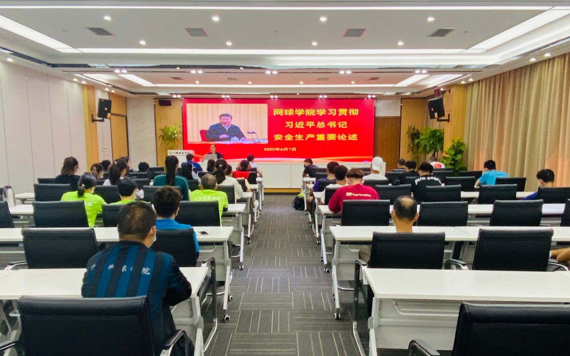 根据《PA视讯集团入口2022年“安全生产月”和“安全生产万里行”活动方案》要求,为强化教职工和运动员安全责任意识,提高其安全素质,网球学院于2022年6月7日上午组织全体教职工、运动员认真学习习近平总书记关于安全生产重要论述,并观看《生命重于泰山》电视专题片。会议由网球学院直属党支部书记丁习明主持。
