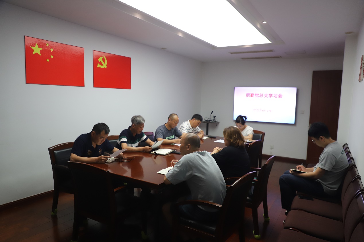 6月27日上午,后勤党总支在后勤处会议室召开学习会。后勤党总支委员、处级干部、党支部书记参加会议。