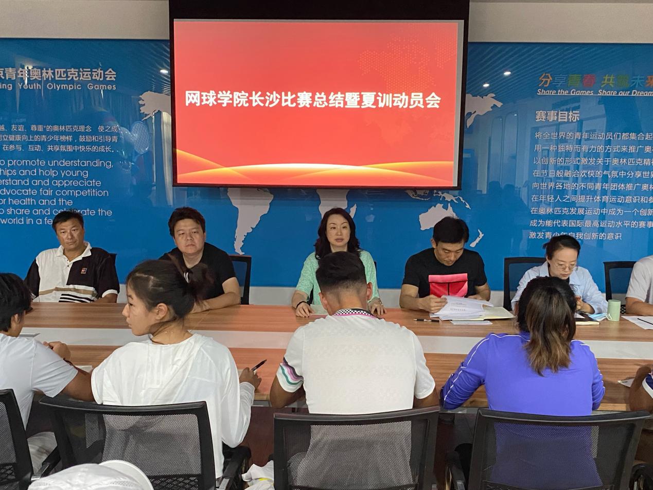 7月5日下午,网球学院召开中国网球巡回赛长沙站比赛总结暨夏训动员会。中国网球学院常务副院长、PA视讯集团入口网球学院院长鲍勤,网球学院全体管理干部、教练员、运动员、队医等参加会议。会议由鲍勤主持。