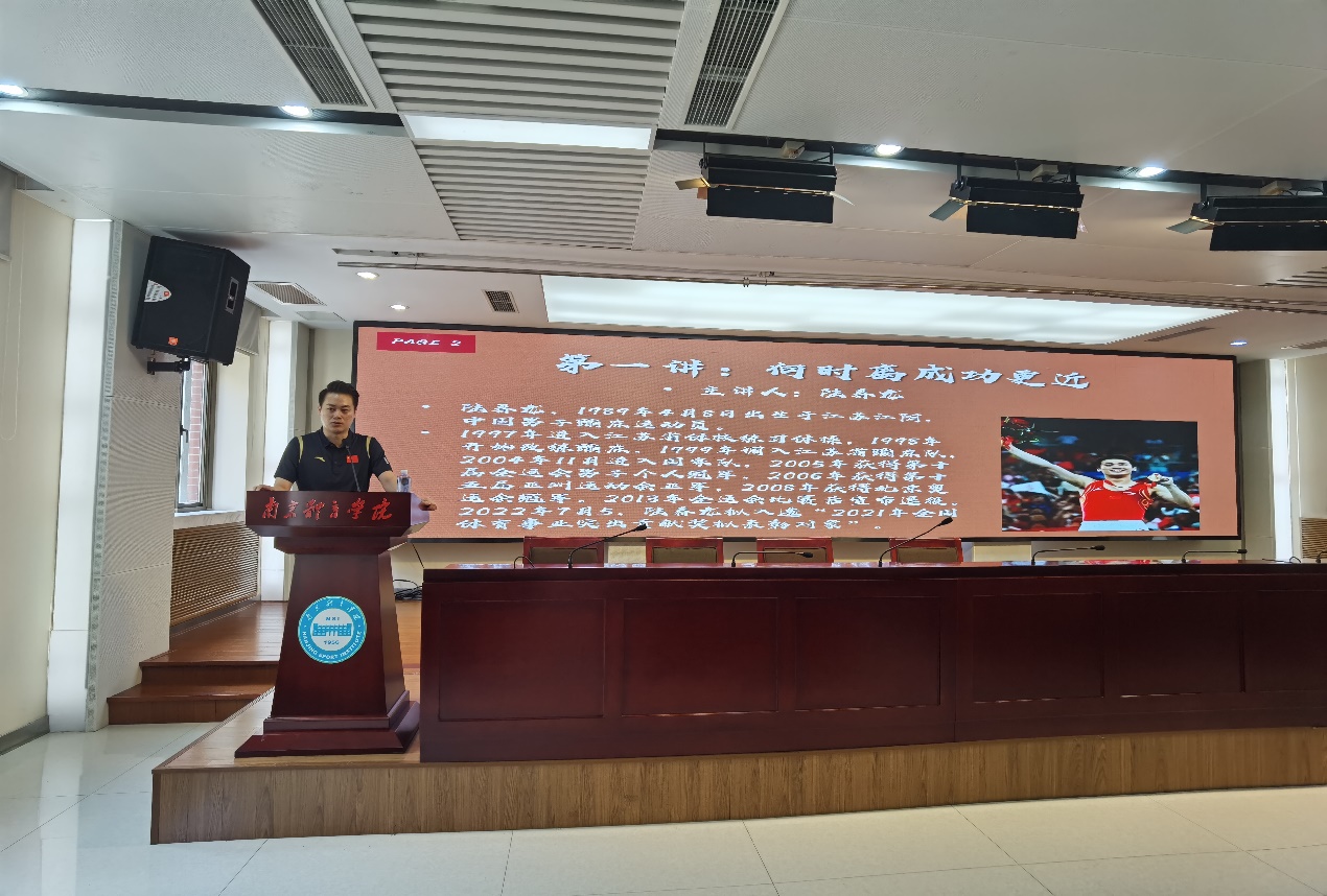 8月5日上午,体操学院“榜样的力量”系列讲座第一讲在校办公楼101会议室顺利开讲。讲座由2008年北京奥运会男子蹦床冠军、体操学院副院长、蹦床队领队陆春龙主讲。