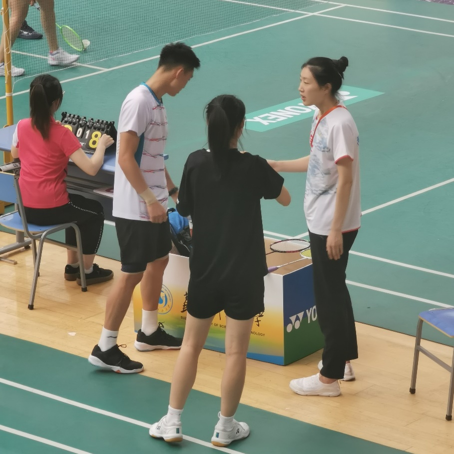运动训练学院委派党总支副书记喻菊担任领队,由葛悦淇、韩紫妍、刘桢三名同学组成的女队和徐柏淳、张乘菲、钟梦亮、杨予博四名队员组成的男队,在专项教师尤铭、邵嘉惠的带领下,参加了甲A组男团、女团、男单、男双、女单、女双、混双七个项目的比赛。