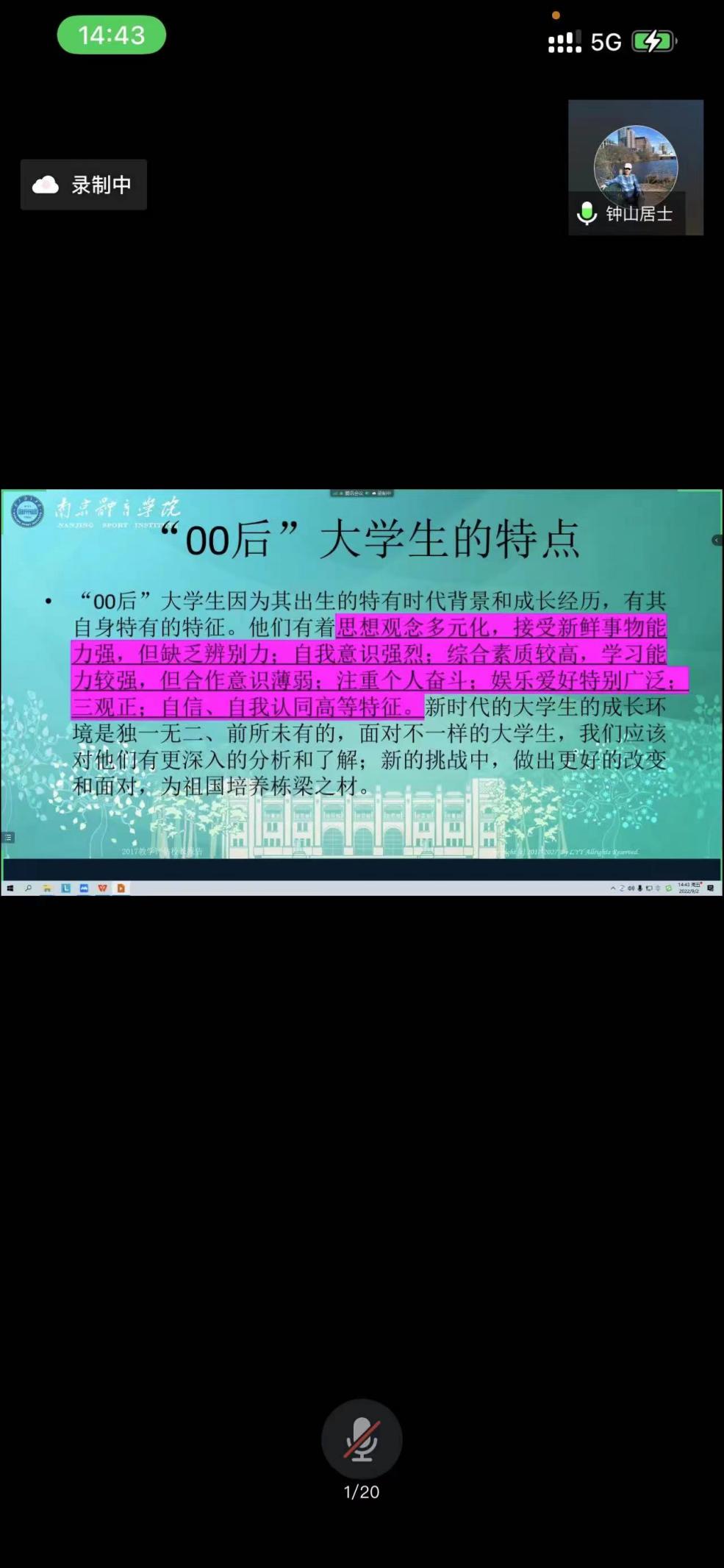 邹国忠结合00后大学生的特点,带领大家深入学习了习近平总书记系列重要讲话精神,要求大家深刻领悟“两个确立”的决定性意义,增强“四个意识”、坚定“四个自信”、做到“两个维护”。他从大学生的七个普遍现象与权衡、新生必须回答的问题、体育人的使命与理想专题学习四个方面入手,帮助新生正确的了解自己、认识大学生活、理解体育人肩负的使命与心怀的理想,切实将学习成效转化为推动学院发展的强大动力,以更加优异成绩迎接党的二十大胜利召开。