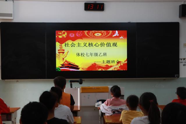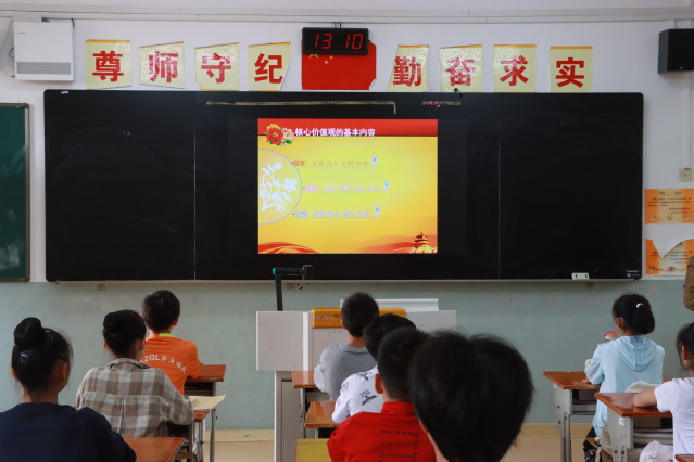 在主题教育班会上,各班通过观看小视频、班主任阐述讲解、集体诵读和背诵等形式,让学生掌握并领悟到了社会主义核心价值观的主要内容、深刻涵义、重要意义以及我们在日常生活中该如何践行社会主义核心价值观,让学生明白爱国并不是高不可攀的事,而是随时随地都可以做到,要紧的是从我做起,从小事做起。最后班主任为新入学的学生开展校纪班规的教育,