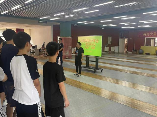 9月26日下午,击剑学院召开意识形态专题分享会,全体管理干部、一二三线运动员参加,分享会由击剑学院副书记徐炳生主讲,副院长、击剑队领队孔庆玮主持。