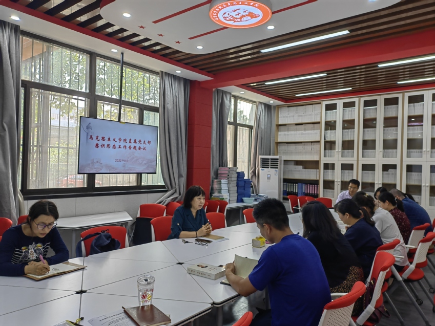 9月30日下午,马克思主义学院直属党支部在思政课教学实践中心召开意识形态工作专题会议,研究部署今后一个时期意识形态相关工作。会议由马克思主义学院直属党支部书记葛翠柏主持,学院全体人员参加了本次会议。