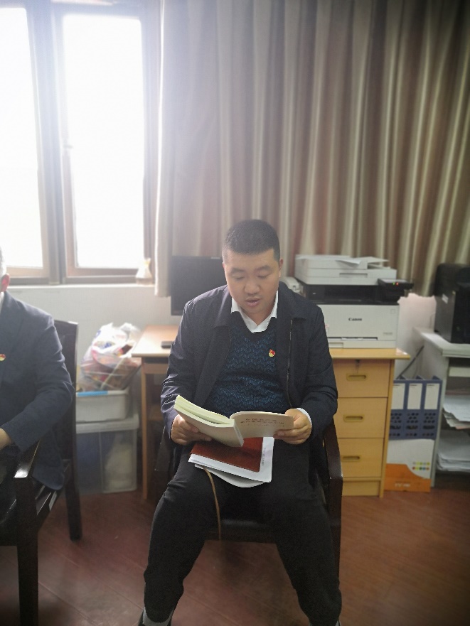 会上,支部书记丁永亮带领全体党员学习了《中国共产党章程》的核心内容,支部纪检委员宋凯领学了《关于新形势下党内政治生活的若干准则》的重点内容,支部组宣委员苏阳领学了《中国共产党纪律处分条例》的重要内容。