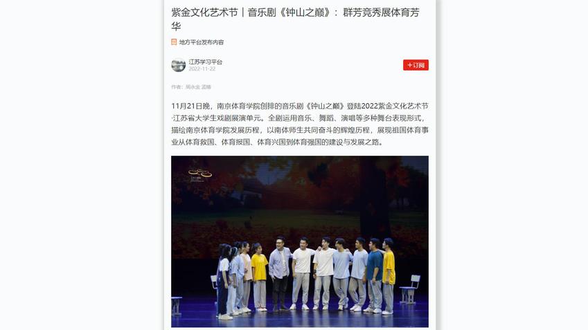 学习强国·江苏学习平台:紫金文化艺术节︱音乐剧《钟山之巅》:群芳竞秀展体育芳华