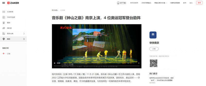 ZAKER 现代快报+:音乐剧《钟山之巅》南京上演,4 位奥运冠军登台助阵