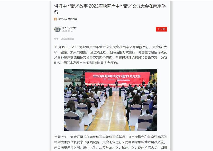 学习强国·江苏学习平台:讲好中华武术故事 2022海峡两岸中华武术交流大会在南京举行