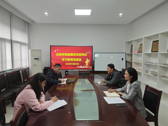 根据校党委《关于做好党纪学习教育总结的通知》文件要求,10月25日上午,击剑学院直属党支部组织召开党纪学习教育总结会,击剑学院班子成员及管理干部参加会议。会议由击剑学院直属党支部书记朱小兰主持。