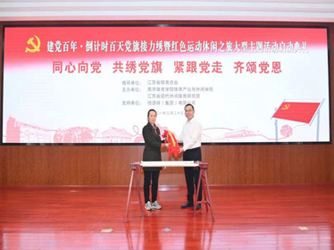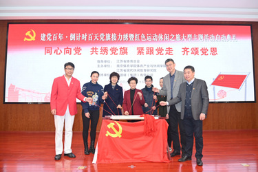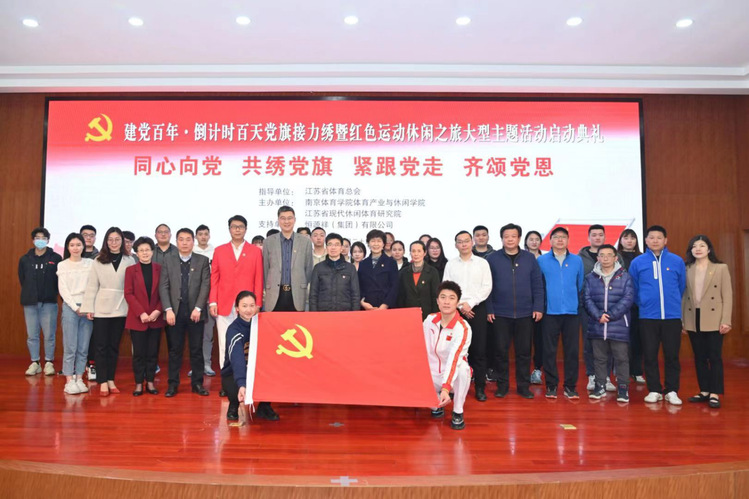 3月23日,为迎接和庆祝中国共产党诞辰100周年,由江苏省体育总会指导,PA视讯集团入口体育产业与休闲学院、江苏省现代休闲体育研究院联合主办的“同心向党 共绣党旗 紧跟党走 齐颂党恩——党旗接力绣暨红色运动休闲之旅大型主题活动”启动典礼在南京体院学院仙林校区举行。活动由江苏省现代休闲体育研究院执行院长徐悦主持。