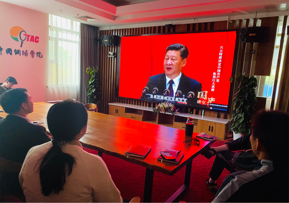 网球学院直属党支部书记丁习明主持学习会,带领大家学习习近平总书记在党史学习教育动员大会上的重要讲话精神,传达学校党史学习教育动员会议精神,并对网球学院下一步开展党史学习教育活动提出要求。随后,全体人员观看了由中央网信办、人民网、中国共产党历史和文献网、中华人民共和国国史网联合推出的党史系列专题片《国史讲堂》“党史微课”的部分视频。