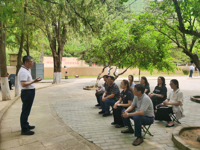 杨家岭里感党恩。13年延安峥嵘岁月,党中央领导人在延安居住时间最长的地方当属杨家岭。在杨家岭革命旧址的现场教学点,所有党员同志有幸聆听了延安大学马克思主义学院张文生副教授以历史周期律为主题的微党课,他用生动的事例将中国共产党由小到大、由弱到强,从低谷走向高峰的历史娓娓道来。机关第一党总支第四党支部其他党员同志也通过线上的方式同步聆听了张教授的党课直播。