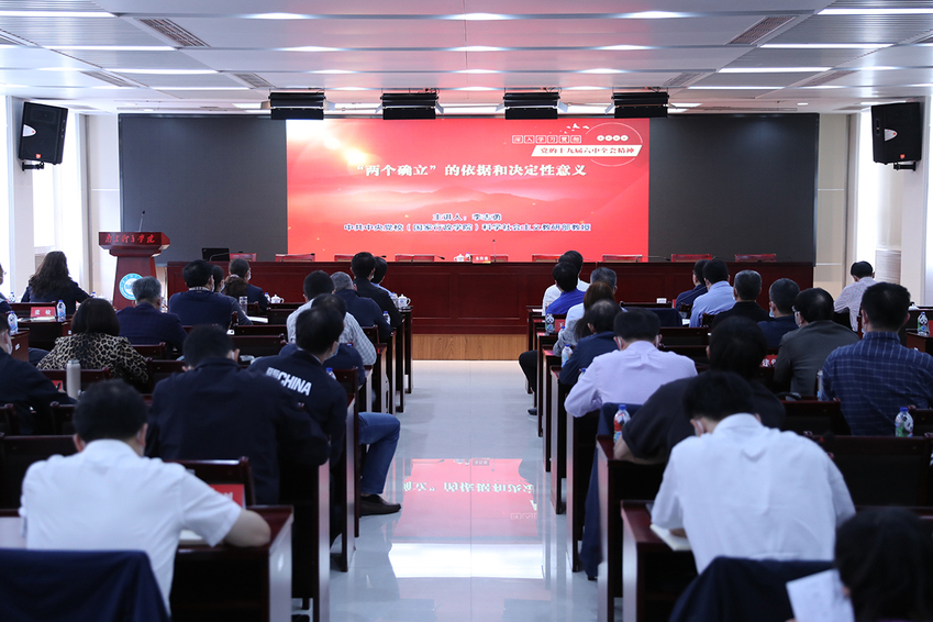 会议集体观看了中共中央党校(国家行政学院)科学社会主义教研部教授、哲学博士李志勇题为《“两个确立”的依据和决定性意义》的讲座视频。讲座简要回顾了“两个确立”的历史渊源,重点从百年党史看“两个确立”的决定性意义、从唯物史观和民主集中制原理理解确立核心、从科学社会主义原理理解确立新思想、把“两个确立”落实到“两个维护”实际行动上四个方面深入讲解了“两个确立”的依据和决定性意义。讲座强调,要充分理解“两个确立”的依据和决定性意义,坚决维护习近平同志党中央的核心、全党的核心地位,坚决维护党中央权威和集中统一领导,坚持不懈用习近平新时代中国特色社会主义思想武装头脑、指导实践、推动工作。讲座观点鲜明,逻辑清晰,内容丰富,帮助与会人员进一步加深了对“两个确立”决定性意义的理解,增强了对“两个确立”的政治认同、理论认同、思想认同、情感认同,起到了很好的学习效果。