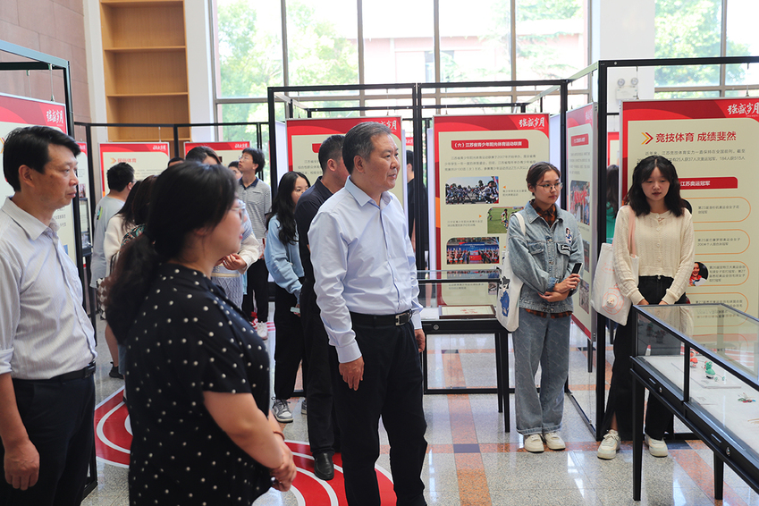 9月29日,江苏体育发展成就图片展在PA视讯图书馆首展。本次展览由江苏省体育局主办,江苏省体育信息中心(江苏省体育文化中心)、PA视讯集团入口党委宣传部、信息化中心、图书馆共同承办。校党委书记朱传耿,校党委常委、副校长李江先后到现场参观展览。
