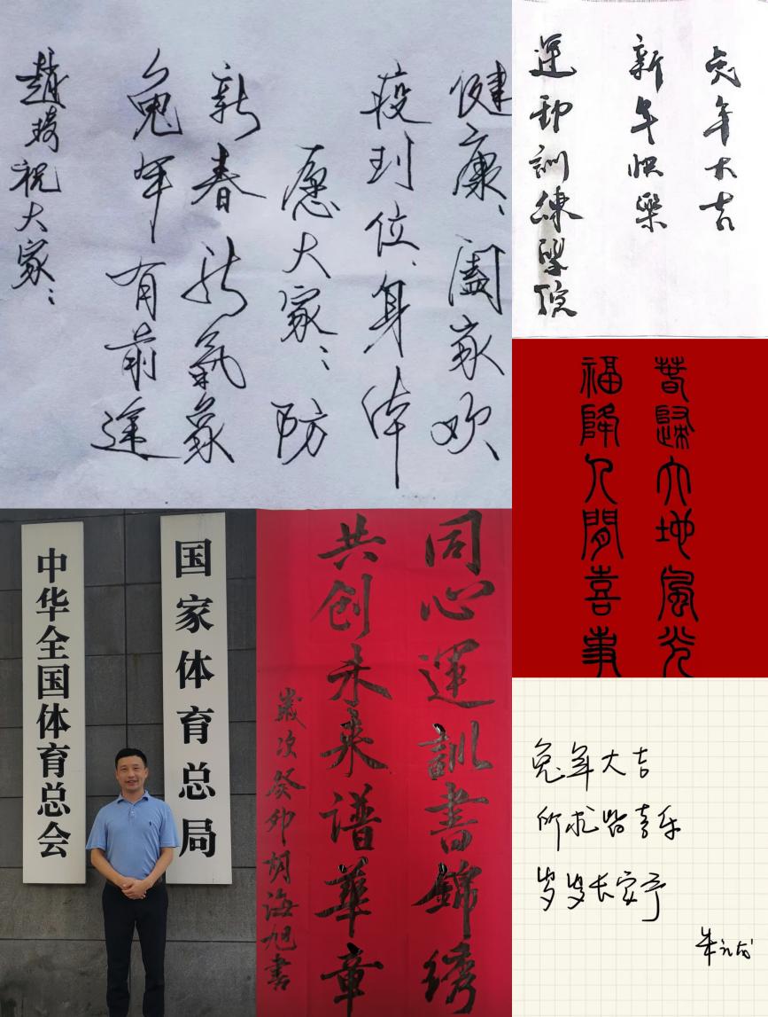 春节是中华民族的重大节日。本次活动旨在传承和弘扬中华民族优秀文化传统,增添农历癸卯兔年的浓厚节日氛围,进一步增强学院全体师生的向心力和凝聚力。此次活动得到了学院全体师生的广泛关注和积极参与,累计收到视频类、书法作品类、文字类等祝福近百条,这些祝福作品内容丰富详实、寓意美好。学院师生积极响应,纷纷发挥所长,有的以视频的形式表达对南体历史成就的肯定,表达对南体未来发展的信心与期望;有的用书法、绘画作品抒发了对盛世中华伟大民族复兴的祝福与期盼。还在国外担任国际足联俱乐部世界杯执裁工作的马宁老师,于百忙之中抽出宝贵时间录制了祝福视频抒发了对学校未来发展和体育强国事业的美好祝愿;新入职教师胡海旭亲自书写对联“同心运训书锦绣,共创未来谱华章”传递出南体人对美好未来奋发有为的决心; “希望自己执行力满满,每天进步一点点,不焦虑,接受不完美的自己。”是学院2022级102226班足球专项学生卢枭对自己新年的期待和憧憬。此外,王豫宁、朱云龙、倪梁钦等青年教师则将新春祝福融入到一幅幅亲手创作的书法作品之中;江秋寒、张杰、周晓军、侯学华、孙苏扬等教师们也结合图片、文字和视频送出最真挚的祝福。