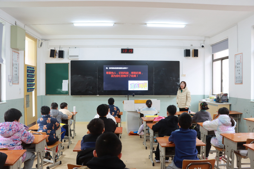 为确保在校学生人身安全和健康成长,针对小学生好动易发生事故的特点,2月20日至25日,附属学校小学部召开“开学安全第一课”校园安全主题班会。