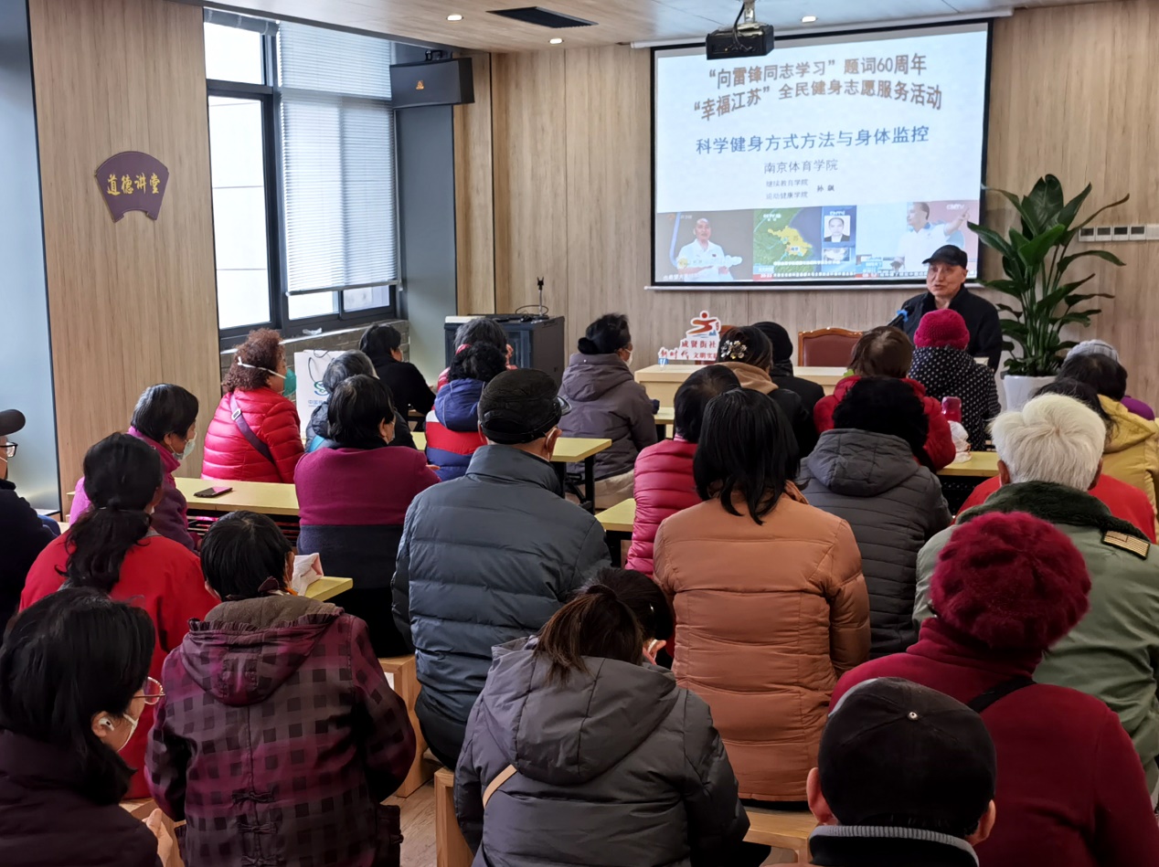为全面贯彻党的二十大精神,落实习近平总书记对深入开展学雷锋活动作出的最新指示,让雷锋精神在新时代绽放更加璀璨的光芒,2月28日下午,PA视讯继续教育学院和省社会体育管理中心在同仁街社区共同举办了“‘向雷锋同志学习’题词60周年‘幸福江苏’全民健身志愿服务主题活动”。PA视讯国家级社会体育指导员孙飙教授面向社区居民开展了以“科学健身方式方法与身体监控”为主题的健康讲座。
