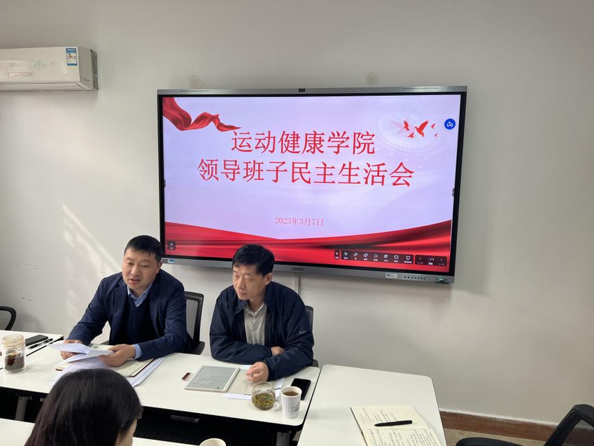 3月7日上午,运动健康学院党总支部根据校党委《关于开好2022年度处级党员领导干部民主生活会的通知》部署要求,在教学办公楼108会议室召开2022年度民主生活会。此次会议由学院党总支书记丁永亮主持,学院党总支副书记阚妮妮、副院长赵彦参加会议,院长汤强列席会议。