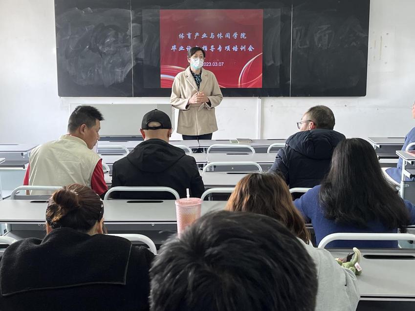 为提升本科毕业论文的质量,规范过程管理,3月7日下午体育产业与休闲学院在仙林校区教学楼401教室举行了本科毕业论文指导专项培训会。本次专项培训会特邀教务处创新创业实践科科长宋燕和省优秀本科毕业论文指导教师侍崇艳副教授做专题指导,会议由副院长柏景岚主持,全体本科毕业论文指导教师参加。