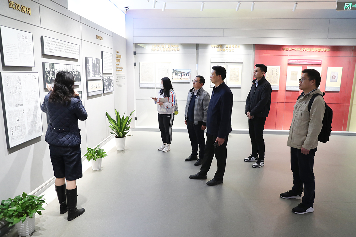 参观结束后,许立俊一行实地考察了新华日报报史馆外围可供开展研学活动的建筑空间,并结合有关主题展陈文化艺术作品,就做好“结合文章”、推动文化建设、打造校园外围主题宣传等事项与刘岩鲲进行了积极的交流讨论。