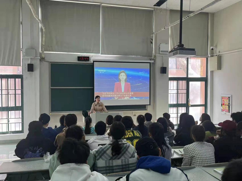 在《形势与政策》课上,陈燕与同学们一起观看学习了习近平总书记在江苏代表团审议时的重要讲话。师生们围绕“‘两会’知识知多少”进行了互动抢答,提高了学生们的课堂参与性和趣味性,也增强了自身的知识检修能力,学习效果得到了有效的提升。